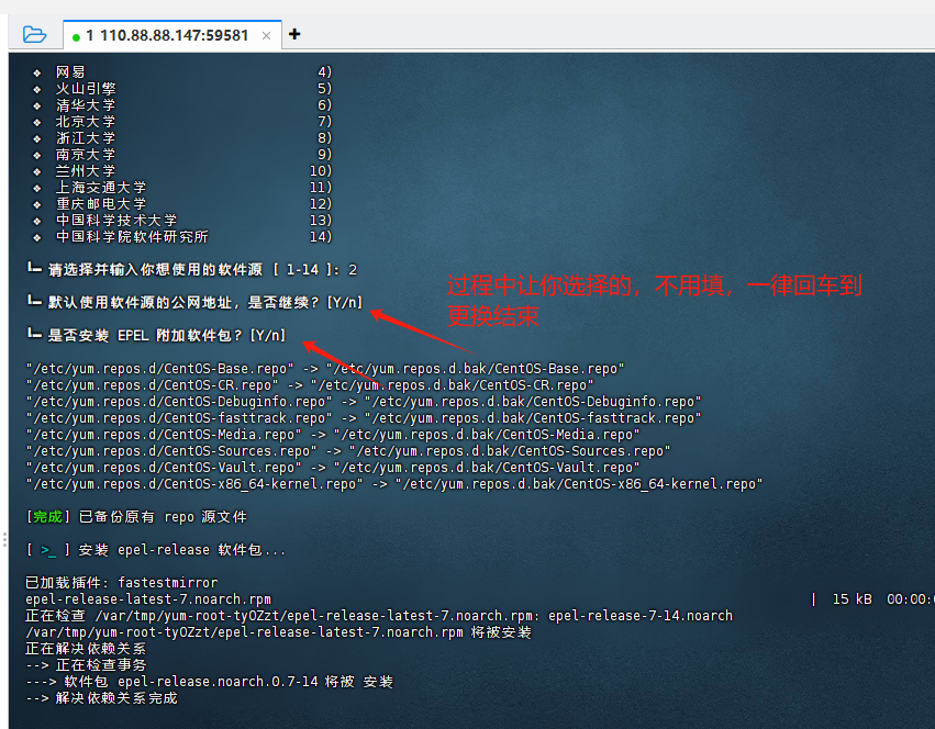 然后选择中国科技大学或者清华大学,一直按回车不要选Y。源更换完成后,即可正常安装软件。
