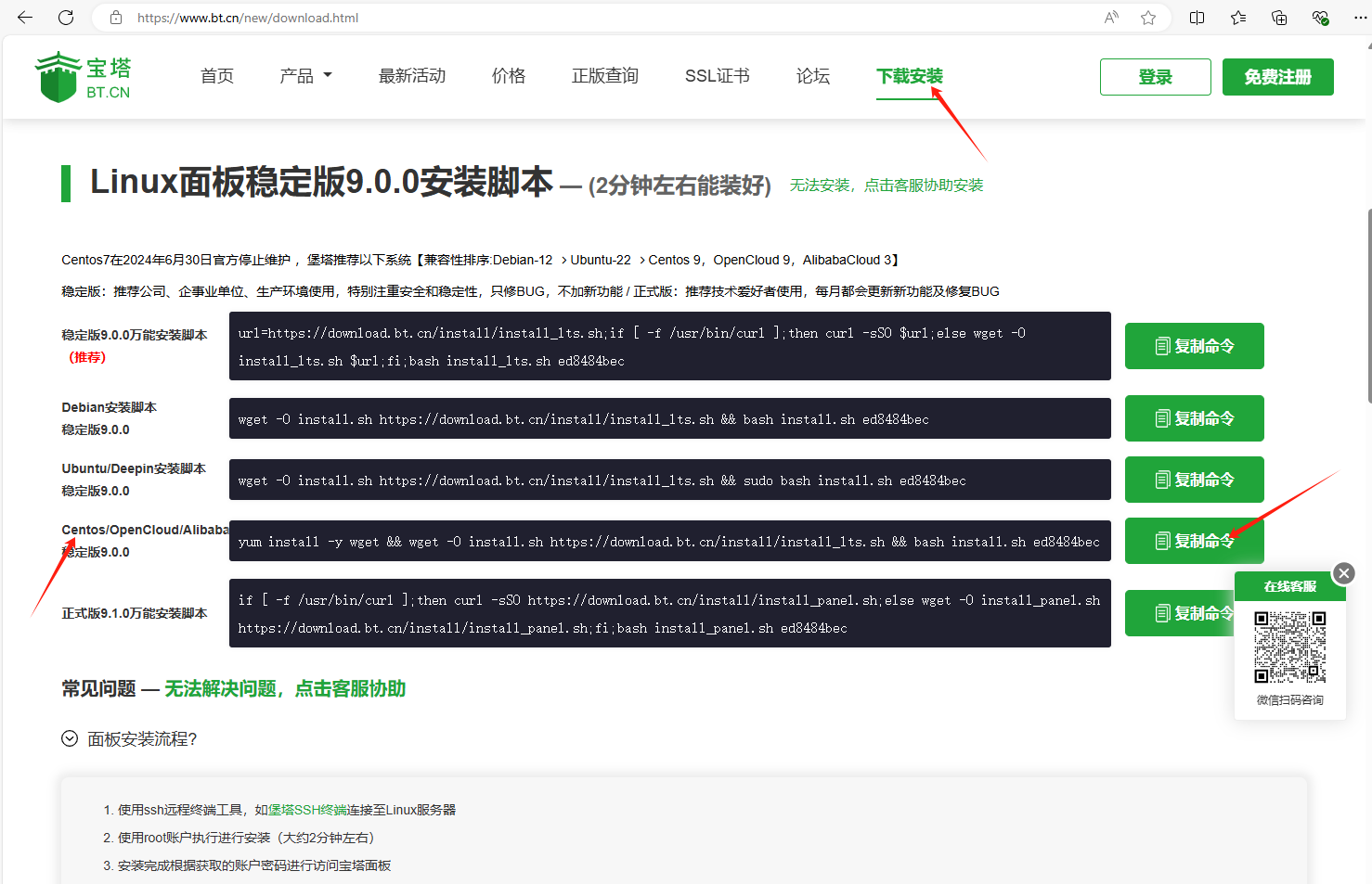 ①首先前往宝塔面板官网,获取到最新宝塔面板的安装命令
