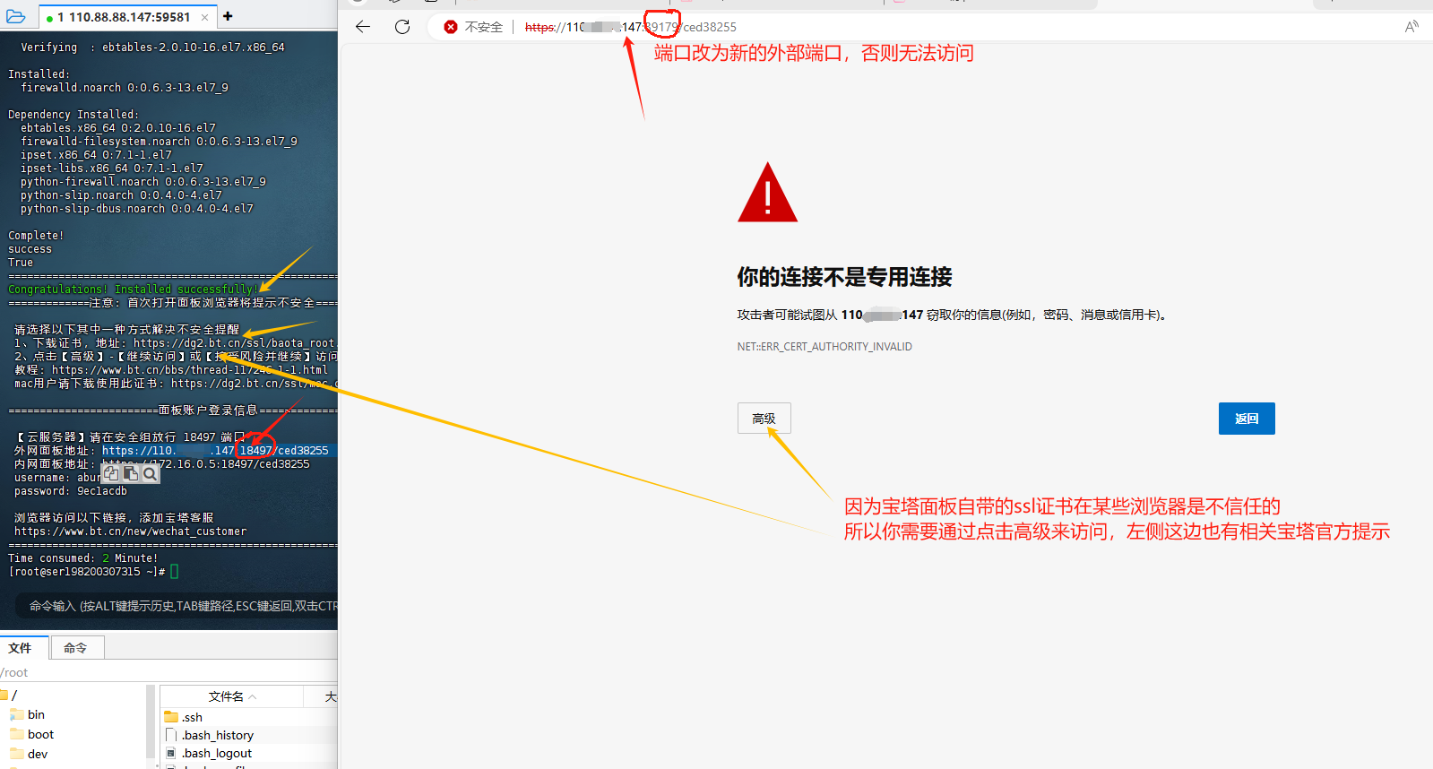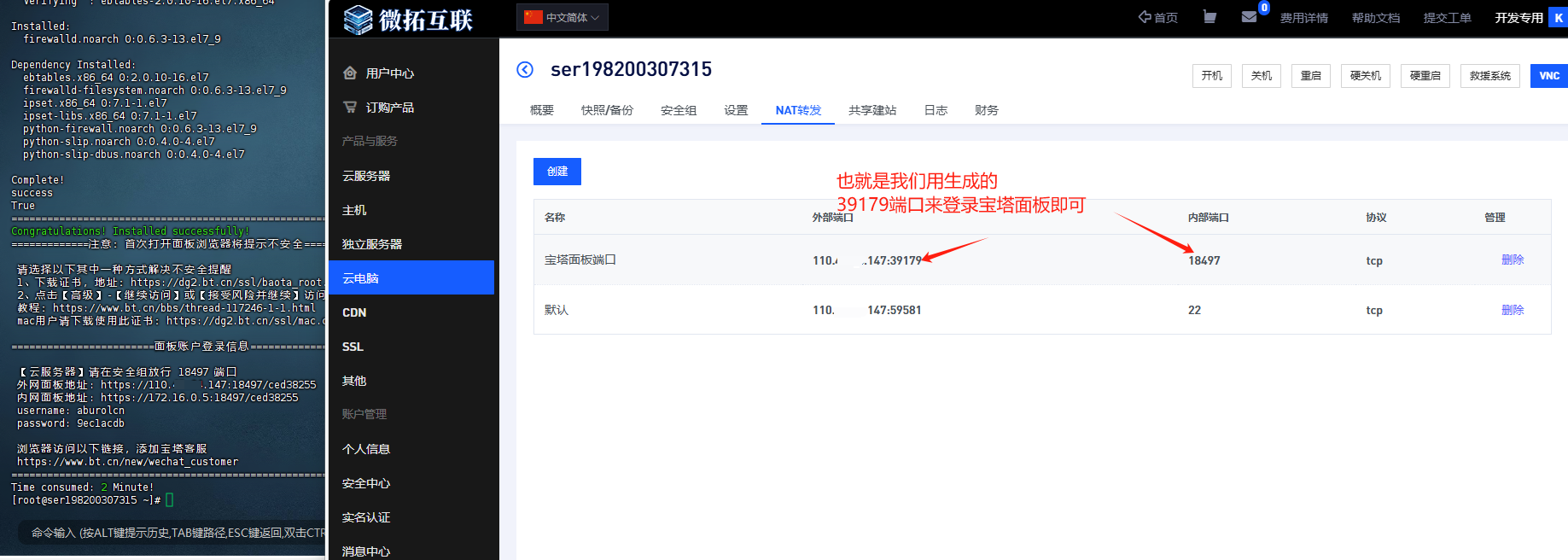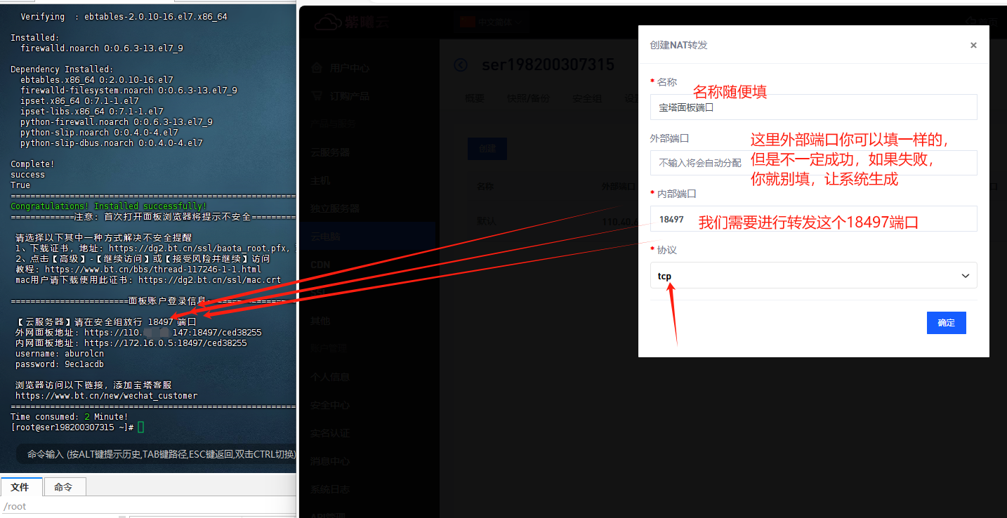 获取到宝塔登录信息,并打开宝塔面板需要的端口NAT转发