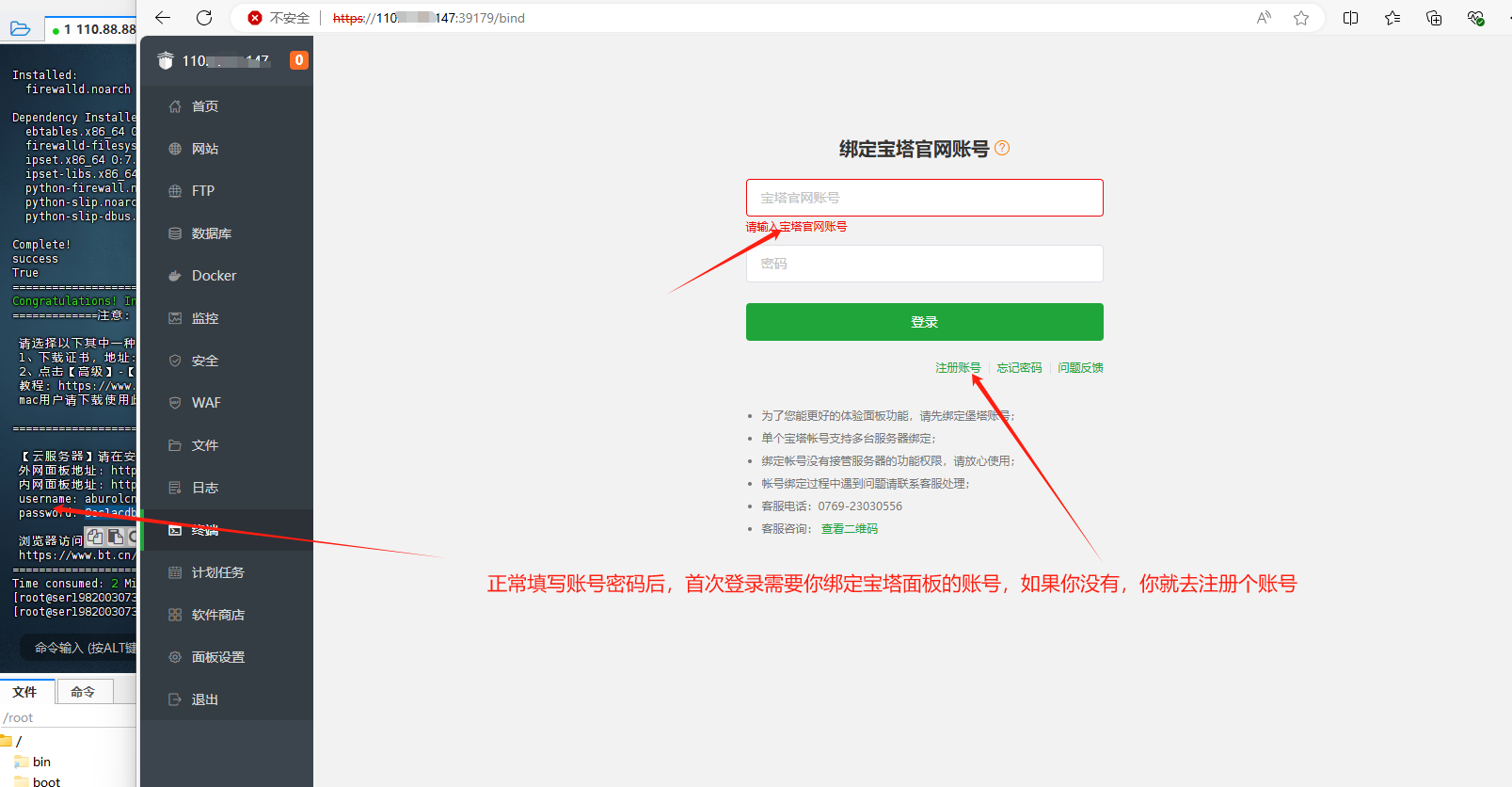 我们正式进入宝塔面板,但是我们复制访问链接的时候,要注意端口要改为生成的新端口号才能访问哦!